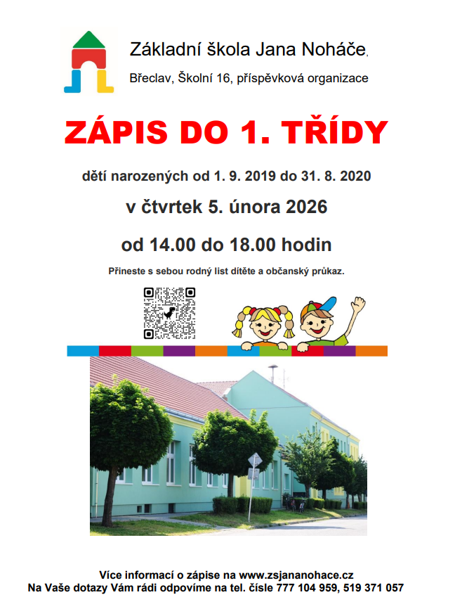 Rádi bychom Vás pozvali k zápisu do první třídy pro školní rok 2026/2027. Zápis proběhne v prostorách naší školy ve čtvrtek 5. února 2026 od 14:00 do 18:00 hodin.