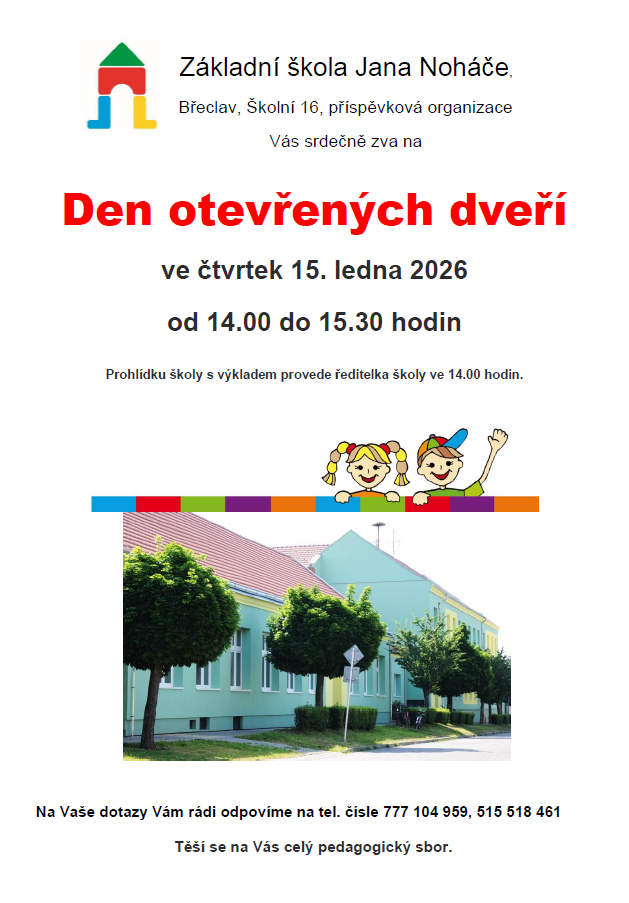 Zveme Vás srdečně na Den otevřených dveří ve čtvrtek 15. ledna 2026 od 14:00 do 15:30 hodin.